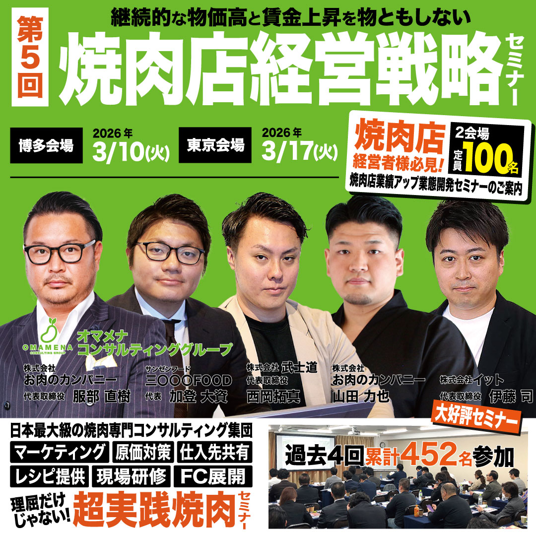 焼肉店の出店、開業から既存店の活性化、多店舗化まで。焼肉店経営.comを運営するOMAMENA(おまめな)コンサルティンググループは焼肉店経営に特化したエキスパート集団です。焼肉事業の成長過程で発生する経営課題ごとに適したエキスパートが御社をサポート。焼肉事業を成功に導きます。