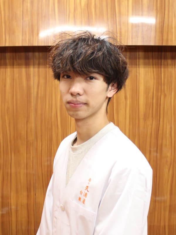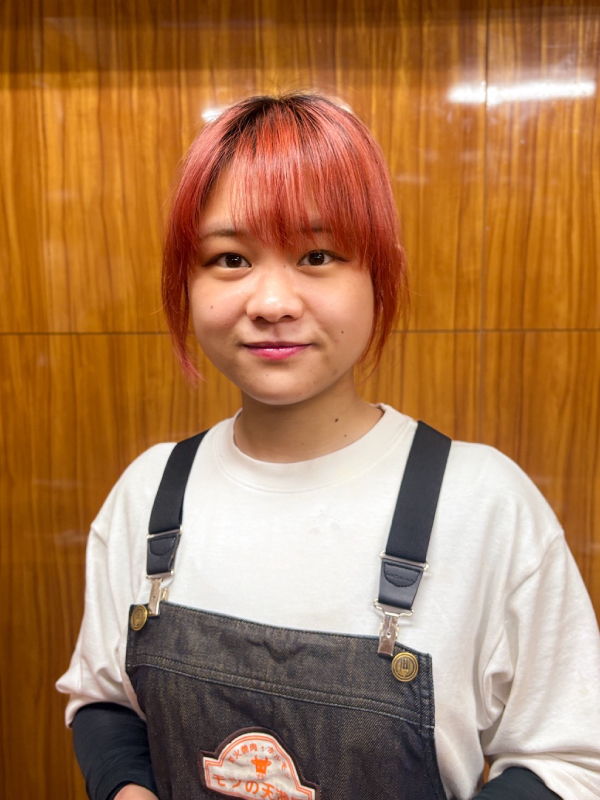 2025年、株式会社お肉のカンパニーに入社。現在は20代前半ながら「モツの天満屋」深夜営業を任され、売上管理、スタッフの配置および育成をはじめとする、店舗運営全般に主体的に携わっている。現場で発生する課題を数値および行動の両面から分析し、安定した店舗運営ならびに継続的な業績向上を意識しながら業務に取り組んでいる。将来的には、確かな成果を積み重ね、店舗全体を任せられる人材となることを目標としている。