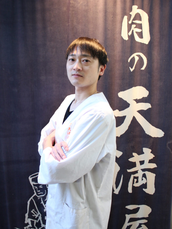 長野県出身、パティシエから肉職人になった異色の経歴をもつ。焼肉&ワインで有名な「東京うしごろバンビーナ」にて1番の肉職人から肉の捌きを2年間学び、銀座有名焼肉店「ひむか」にて当時料理長であった山田力也の下、牛一頭肉の知識と技術全般をさらに2年間学ぶ。その後、埼玉にて焼肉店の立ち上げ・料理長を経験した後、30歳で肉の天満屋 神楽亭へ。日々の現場業務を全うしつつ、今後は有名店で培った肉の知識と技術を活かし、全国の焼肉店サポートに向け店舗運営やメニュー開発を行う。